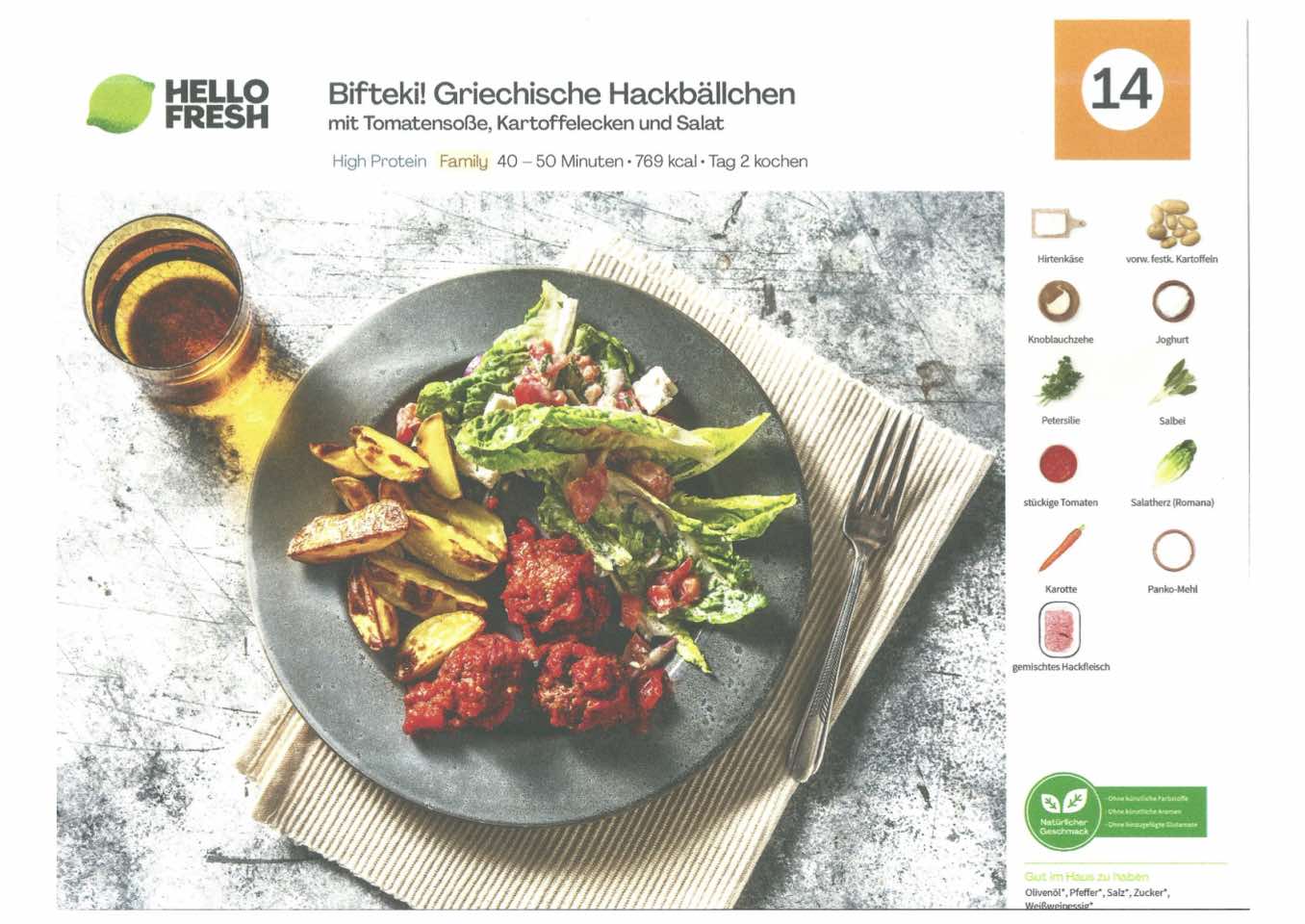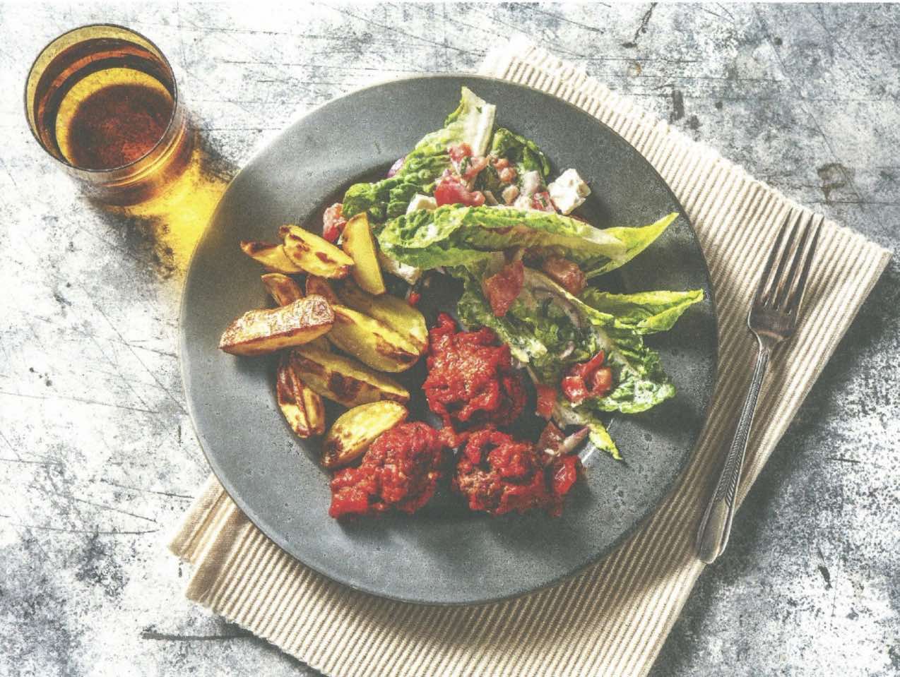 Bifteki! Griechische Hackbällchen mit Tomatensoße, Kartoffelecken und Salat