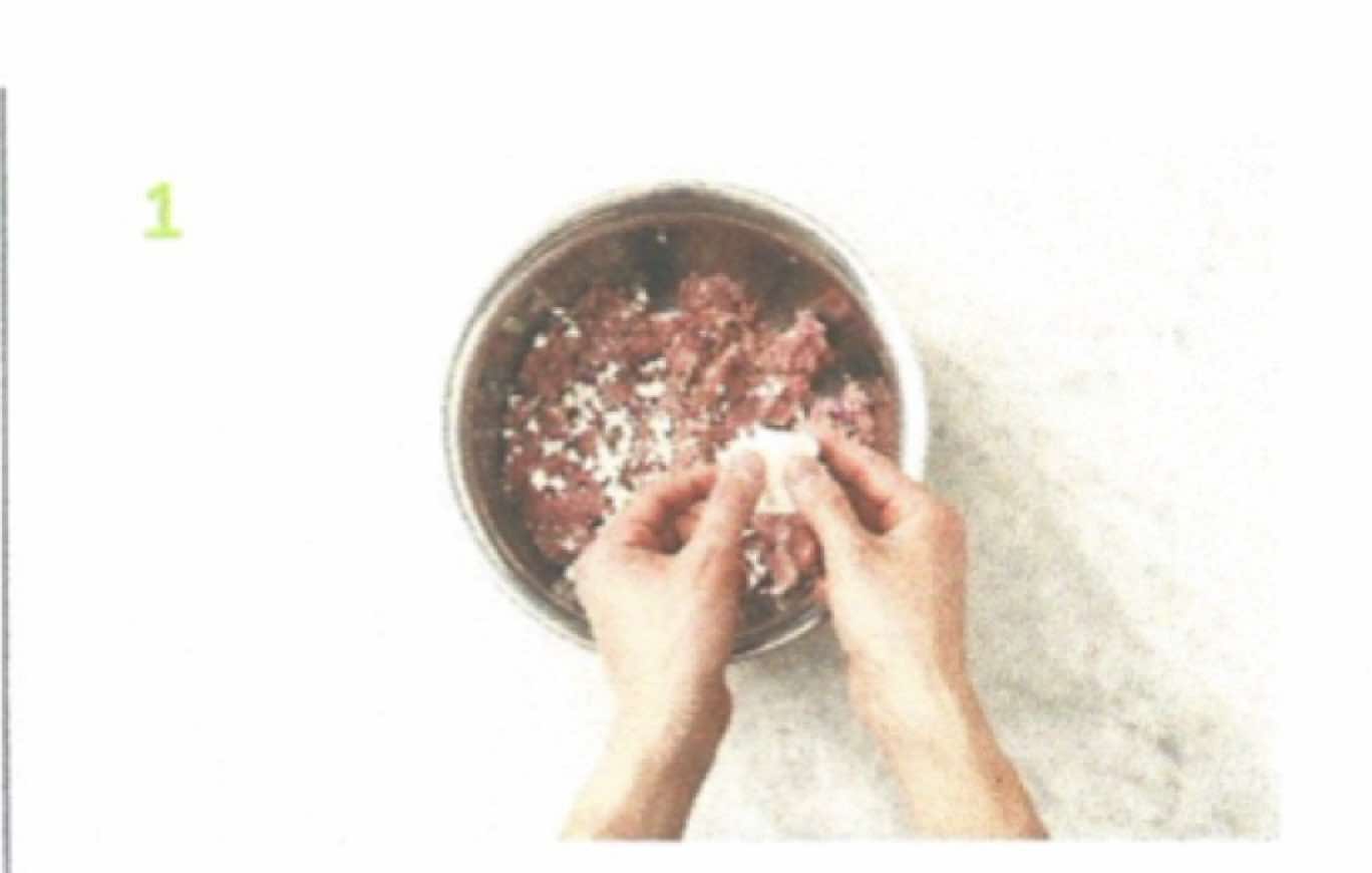 In einer großen Schüssel Hackfleisch mit Panko-Mehl, der Hälfte des Knoblauchs und 2 EL [3 EL | 4 EL] Wasser mischen.
