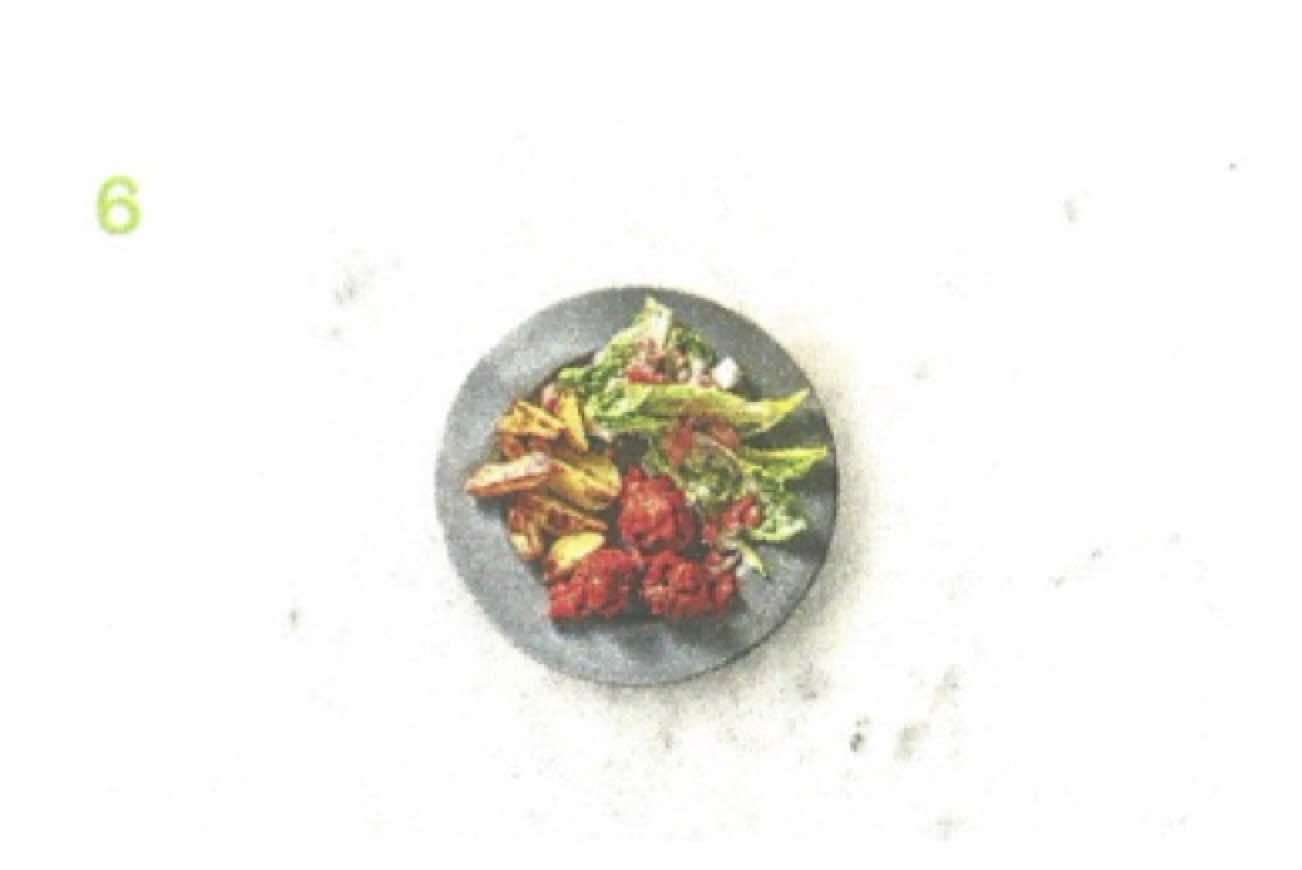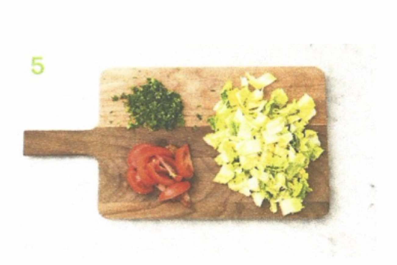 In einer kleinen Schüssel stückige Tomaten mit Salbei und dem restlichen gehackten Knoblauch mischen. Mit Salz, Pfeffer und Zucker abschmecken.
